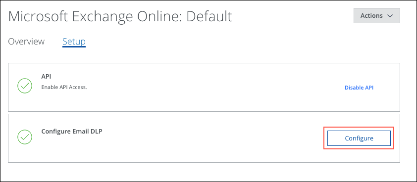 - Click Setup, then click Configure to the right of Configure Email DLP.
